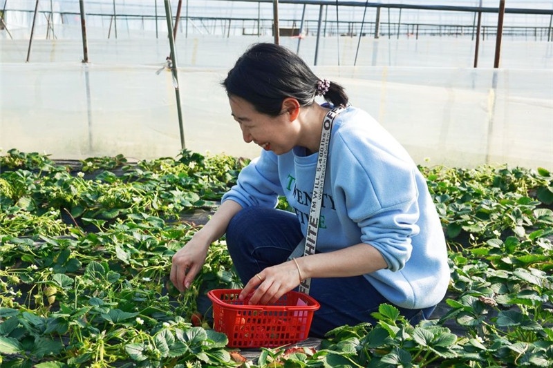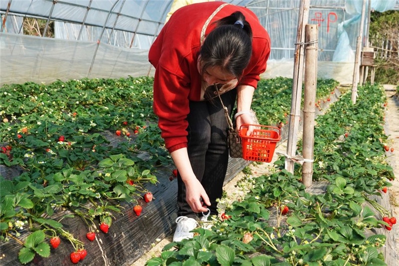 在采摘园内,女职工们踏着春天的泥土快步健走,零距离感受大自然景物 。草莓棚中,一畦畦碧绿的草莓秧下,一颗颗鲜艳欲滴的草莓散落在绿叶丛中,芳香的果香扑鼻而来 。虽然大棚里门路狭窄、空气较为闷热,可是每个人的热情却丝毫未减,各人边采摘边交流,现场气氛轻松活跃,欢声笑语不绝 。
